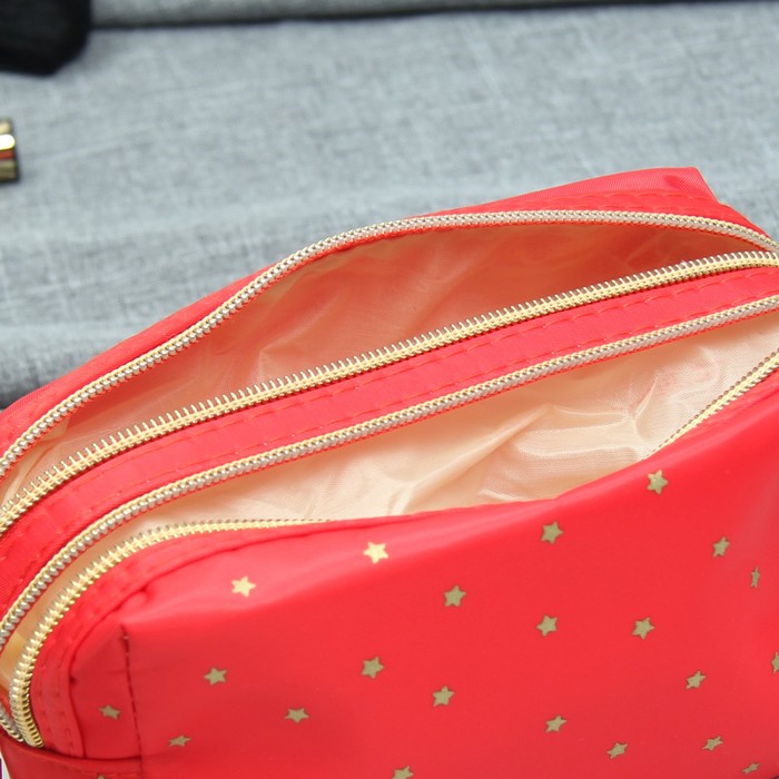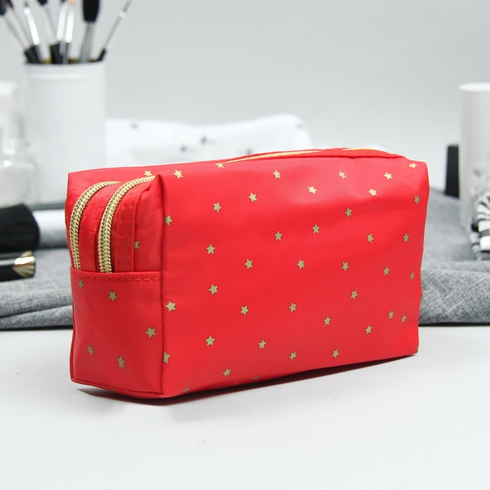 Косметичка «Звёзды», 2 отдела на молниях, ручка, цвет красный
