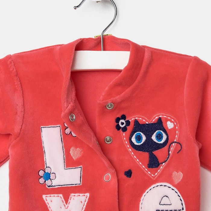 Костюм для девочки (жакет+брюки) "Кошка лав", рост 74-80 (24) см, цвет коралловый