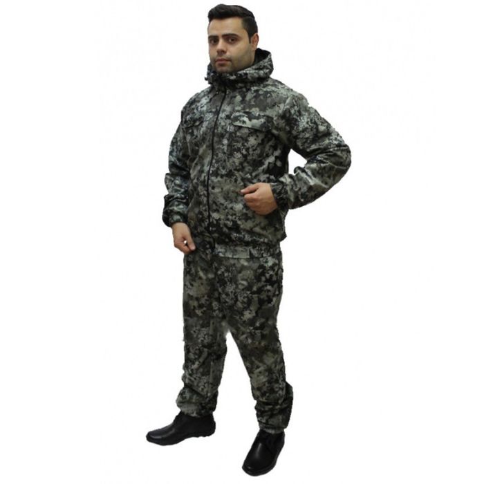 Костюм «Сокол» выполнен из трикотажного материала с мембранным покрытием. Ткань не шуршит и почти не промокает.
