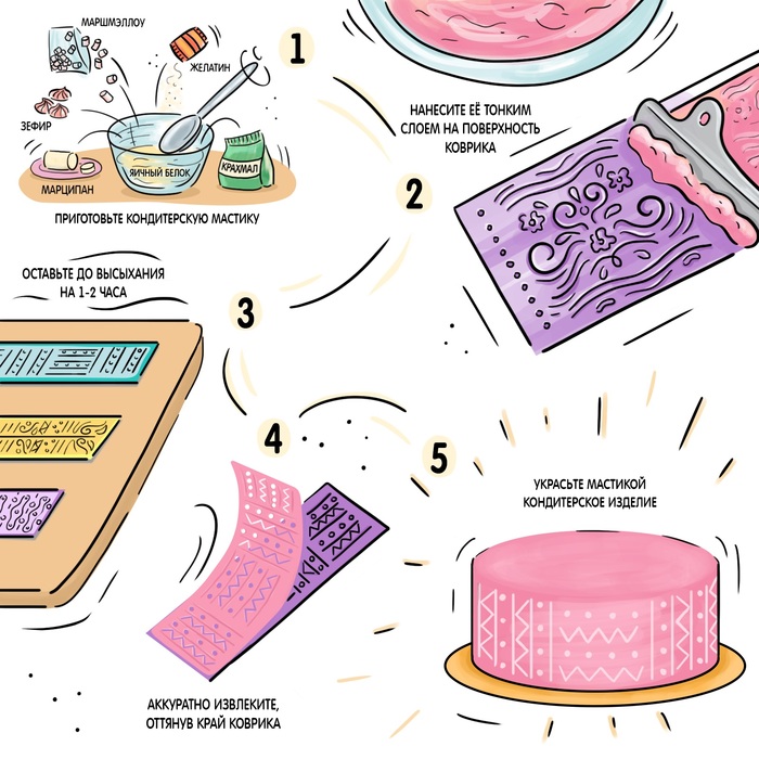 Коврик для айсинга 38,5х8 см "Капкейки", цвета МИКС