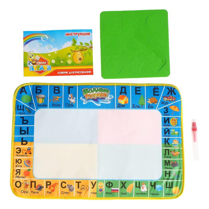 Коврик для рисования водой "Азбука", штампы, трафареты, водный фломастер, инструкция, БОНУС - Игра "Люди Мира"