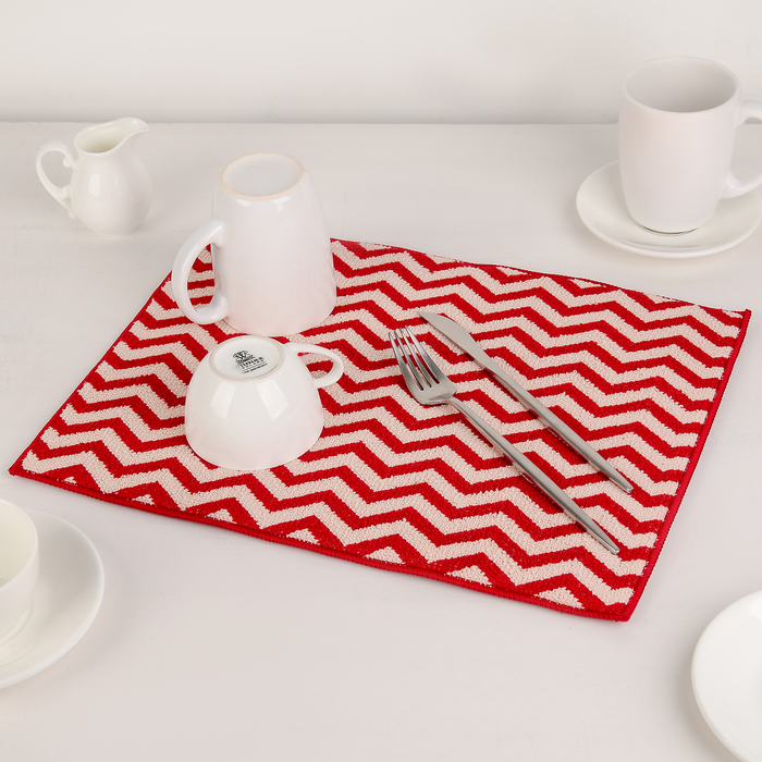 Коврик для сушки посуды 30х40 см "Зигзаг", микрофибра, цвет красный