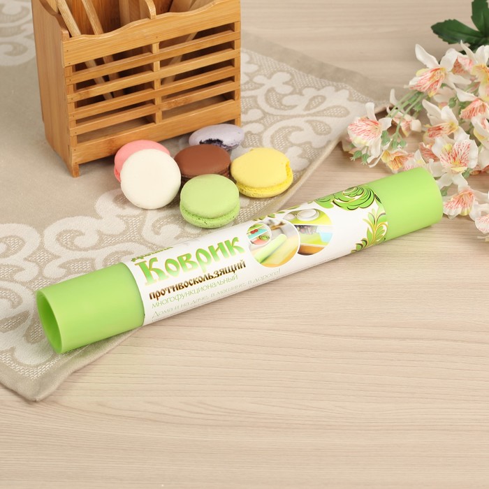 Коврик противоскользящий "Фигуры" 30х90 см, цвет зелёный не только оградит кухонные поверхности от пятен и крошек, но и позволит с минимальными усилиями и вложениями освежить интерьер.
