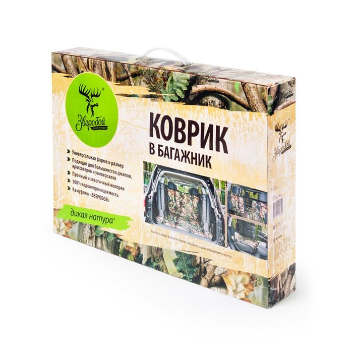 Коврик в багажник "Зверобой" ZV/MAT-190 S, неопрен, 146x189 см, 2 молнии, крепление к штатным подголовникам, комплект люверсов, расцветка "летний камуфляж"