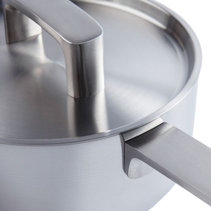 Бесшовный корпус изделия состоит из пяти слоёв качественного металла, который обеспечивает равномерное распределение тепла. Посуда пригодится тем, кто любит здоровую еду и стремится снизить потребление жиров.