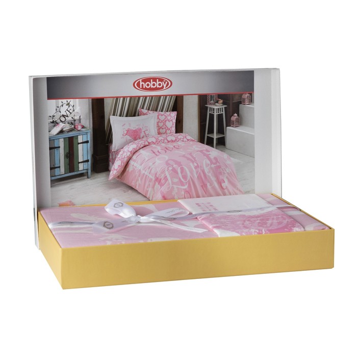 КПБ LOVE 1,5 сп., 160х240 см, 160х220 см, 50х70 см, 70х70 см по 1 шт., поплин, розовый