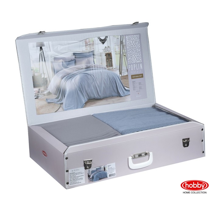 КПБ Natural 1,5 сп, 160х240 см, 160х220 см, 50х70 см-3 шт., покрывало 180х230 см, синий