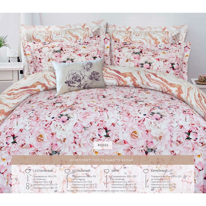 КПБ Rose дуэт, 240×260 см, 145×210 см-2 шт, 50×70 см, 70×70 см по 2 шт, сатин