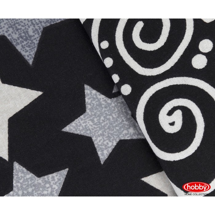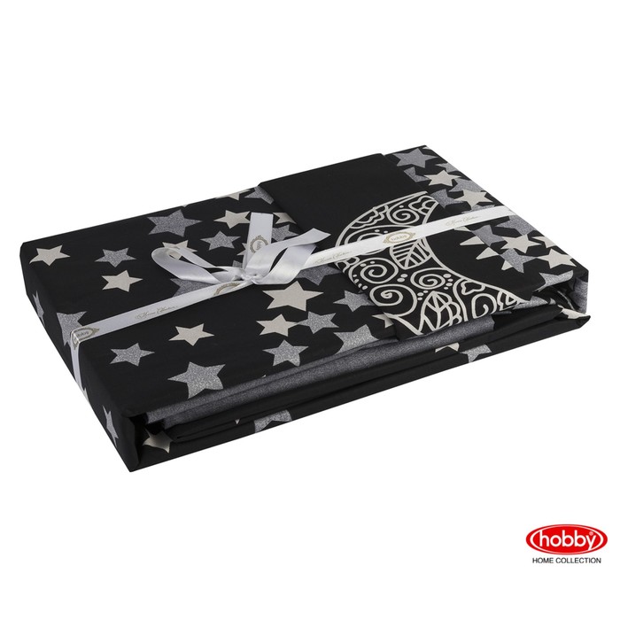 КПБ STARS 1,5 сп., 160х240 см, 160х220 см, 50х70 см, 70х70 см по 1 шт., поплин, чёрный