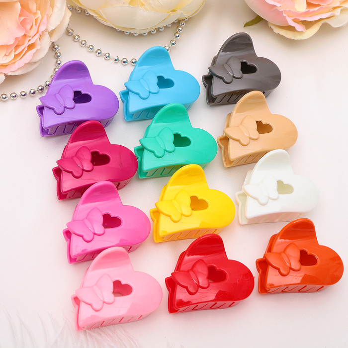 Краб для волос "Адажио" 4,5 см сердце с бабочкой, микс — отличный помощник в создании аккуратной и красивой укладки за считанные секунды. Сделайте образ ярким!