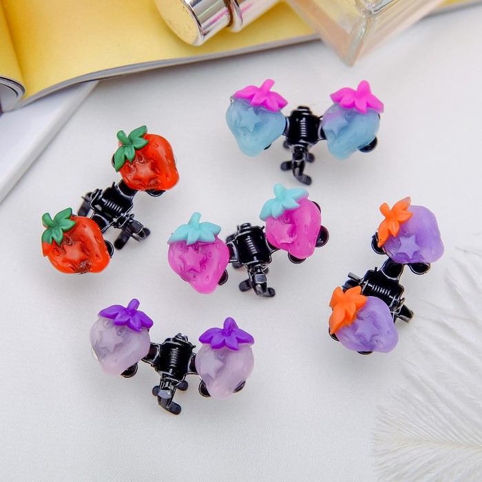 Краб для волос "Мармелад" 1,2 см клубничка, микс