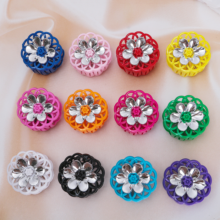 Краб для волос "Отражение" 5,5 см, цветок, круглый, микс