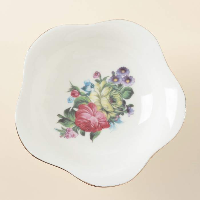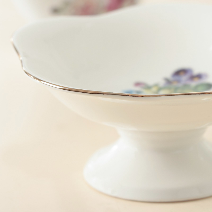 Креманка традиционной формы поможет оформить стол для пышных торжеств. Предмет изготовлен из качественной тонкостенной керамики. Нежно-белая поверхность придётся по душе ценителям классики. Яркий рисунок отличается тщательностью проработки. Элегантный штрих — кайма насыщенного золотого цвета.