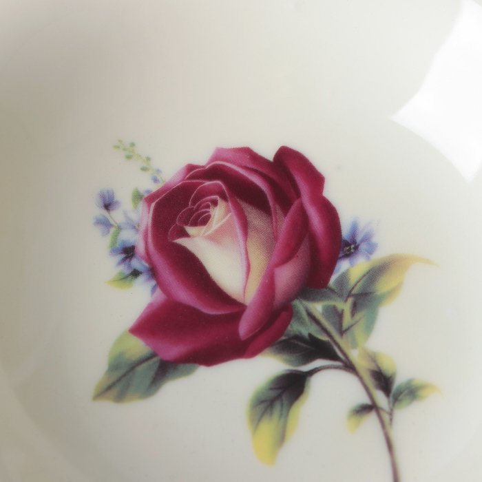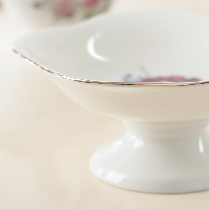 Креманка традиционной формы поможет оформить стол для пышных торжеств. Предмет изготовлен из качественной тонкостенной керамики. Нежно-белая поверхность придётся по душе ценителям классики. Яркий рисунок отличается тщательностью проработки. Элегантный штрих — кайма насыщенного золотого цвета.