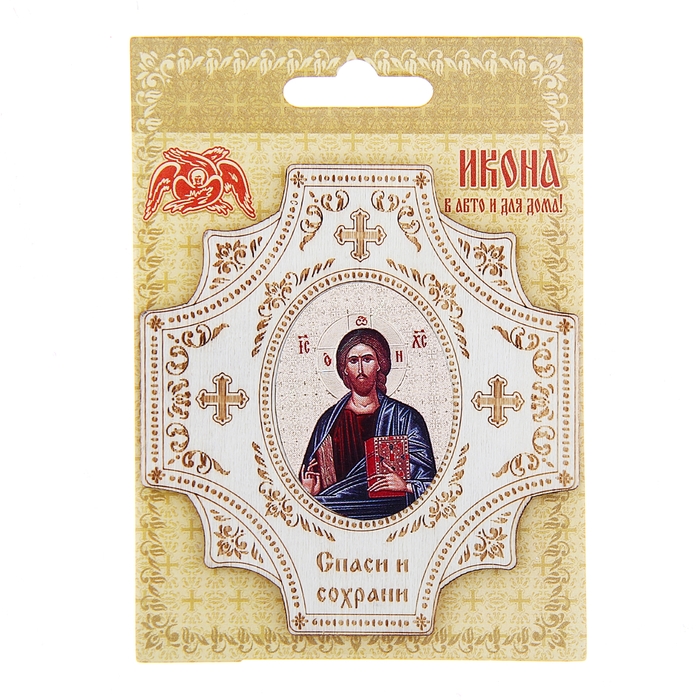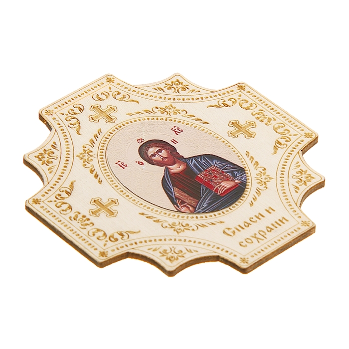 Крестообразная икона в авто "Иисус Христос" на клеящейся основе