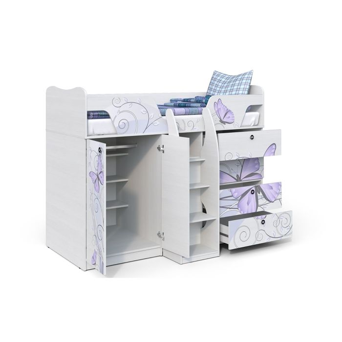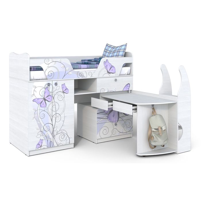 Дополнительная информация. Принт нанесён методом УФ-печати, что обеспечивает его высокую стойкость к истиранию. Ящики оснащены бесшумными направляющими полного выдвижения. В корпус кровати встроен поворотный стол большой площади. Возможна зеркальная сборка.