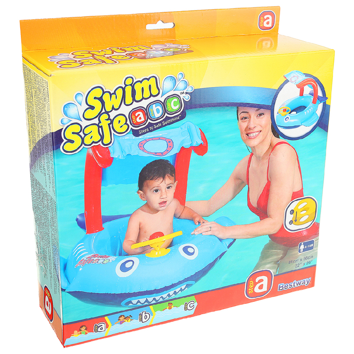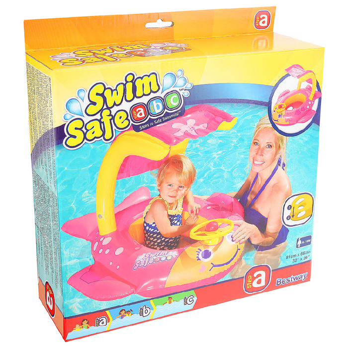 Круг для плавания "Весёлая акула", с сиденьеми тентом, 81*66см, от 6-18мес МИКС (34108)
