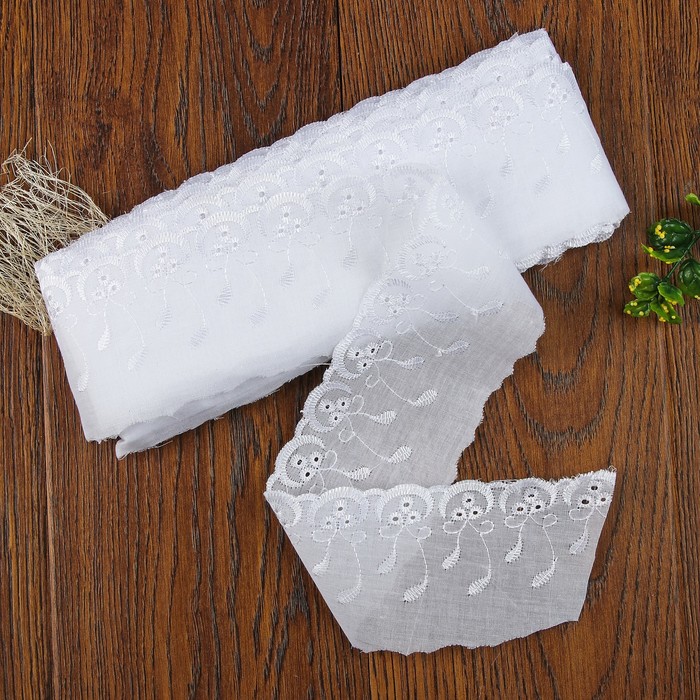 Кружево-шитьё — это вид декоративной тесьмы с ажурными узорами, вышитыми машинным способом. С помощью такого украшения вы можете оформить одежду и другие текстильные изделия, даже постельное белье. Для рукодельниц кружево-шитьё пригодится в оформлении интерьера: украсьте им декоративные панно, скатерти и салфетки.