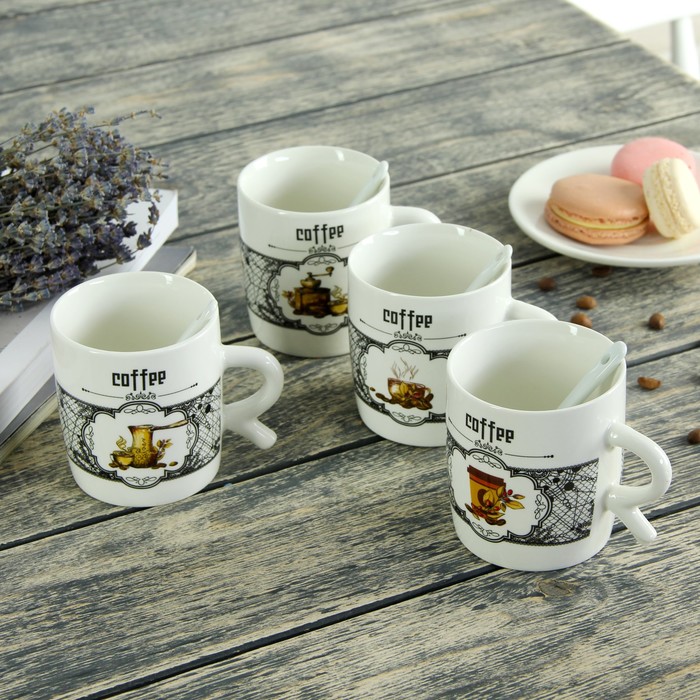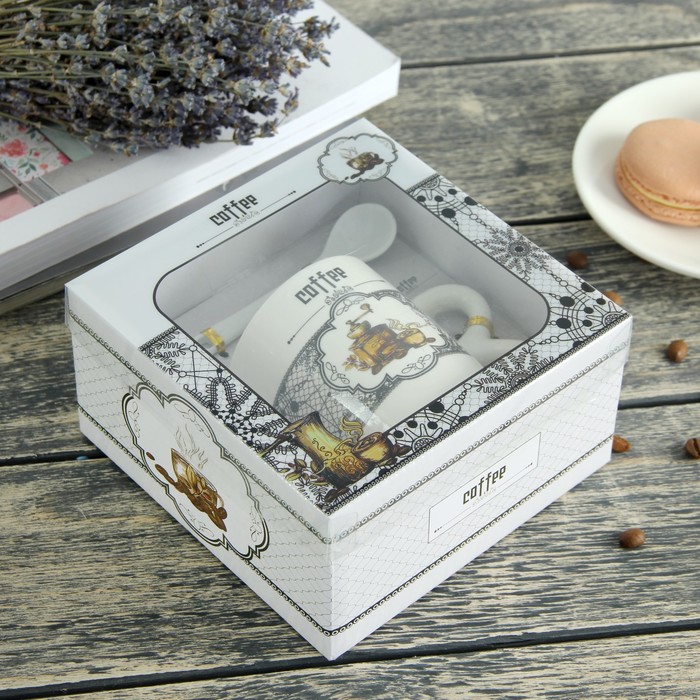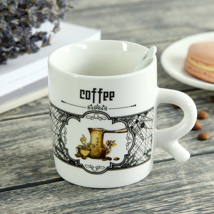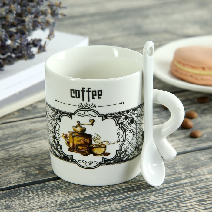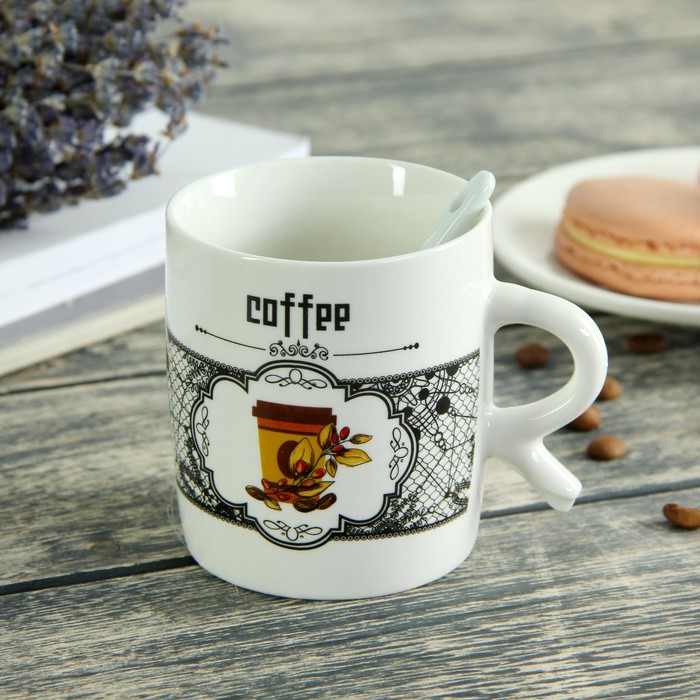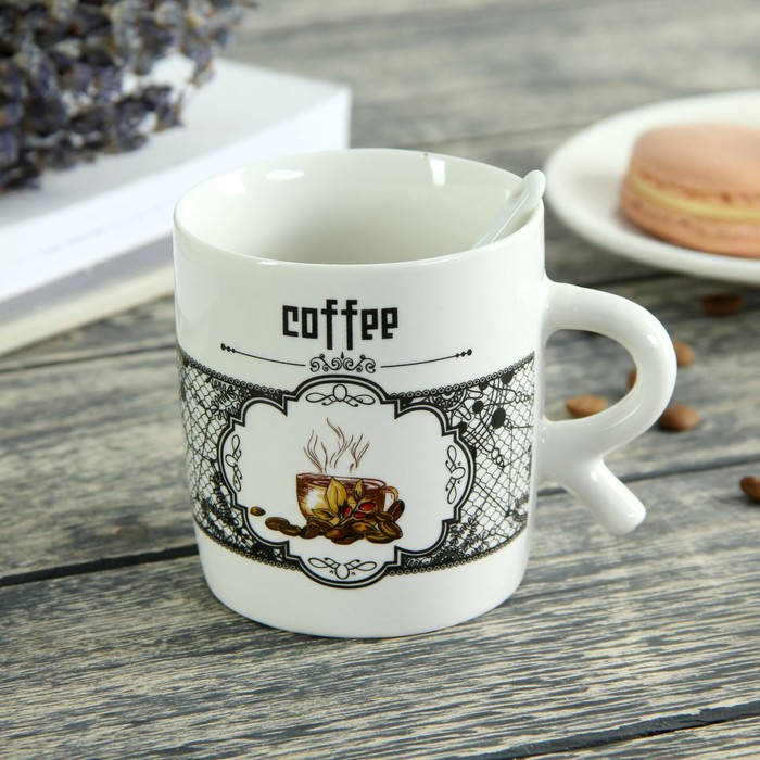 Кружка 200 мл "Кофейный аромат", с ложкой, рисунок МИКС