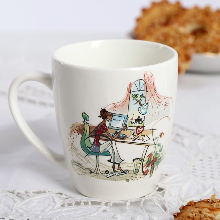 Фаянсовая кружка с оригинальным рисунком на нежно-белой поверхности станет приятным подарком для человека любого возраста и пола. Из такой посуды пить горячий чай дома и на работе особенно хорошо!