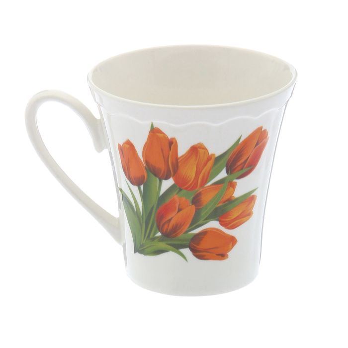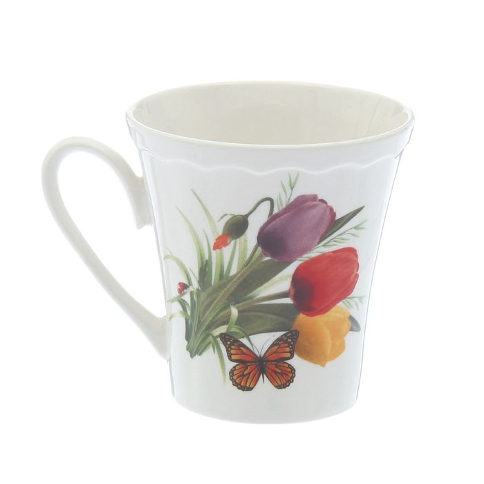 Кружка 300 мл "Марго" деколь, цветы выполнена из керамики. Изделие выдержит высокую и низкую температуру, надолго сохранит чай горячим, а остуженные напитки холодными.