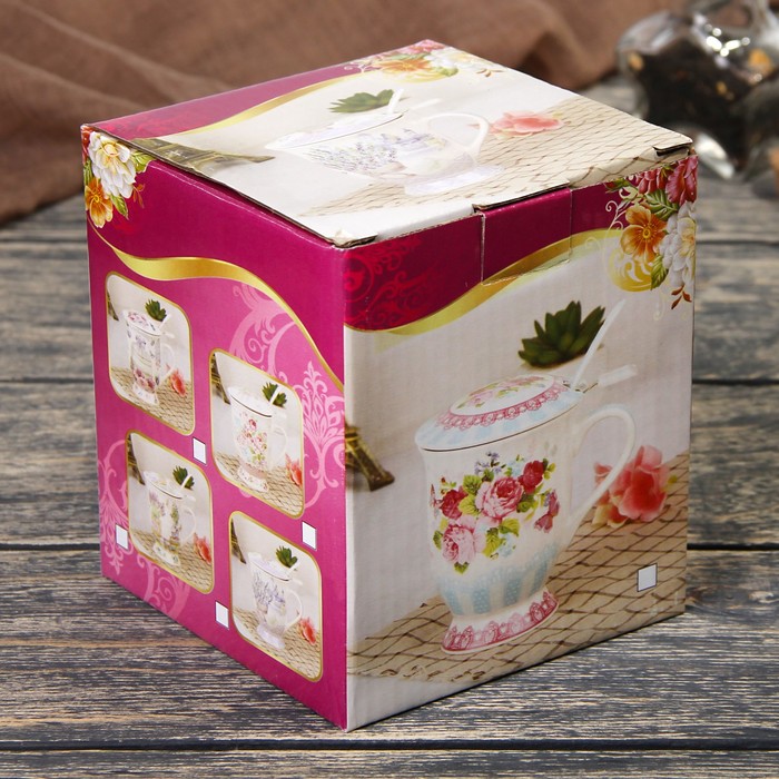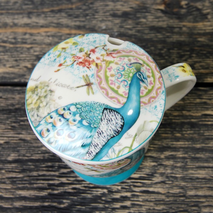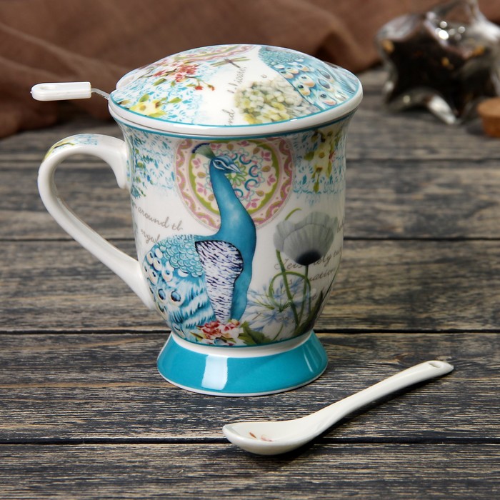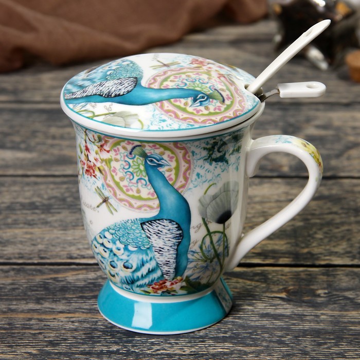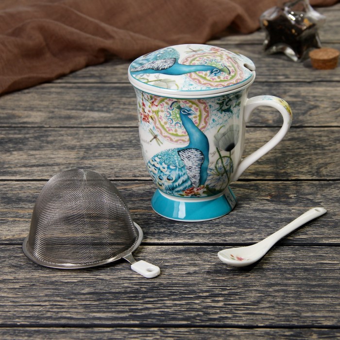 Кружка 300 мл "Павлин", с ситом, ложкой и крышкой