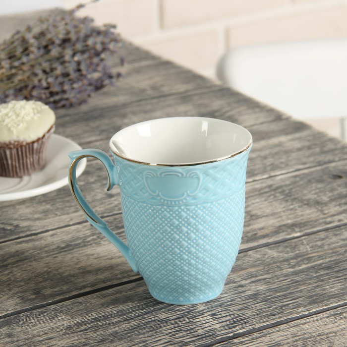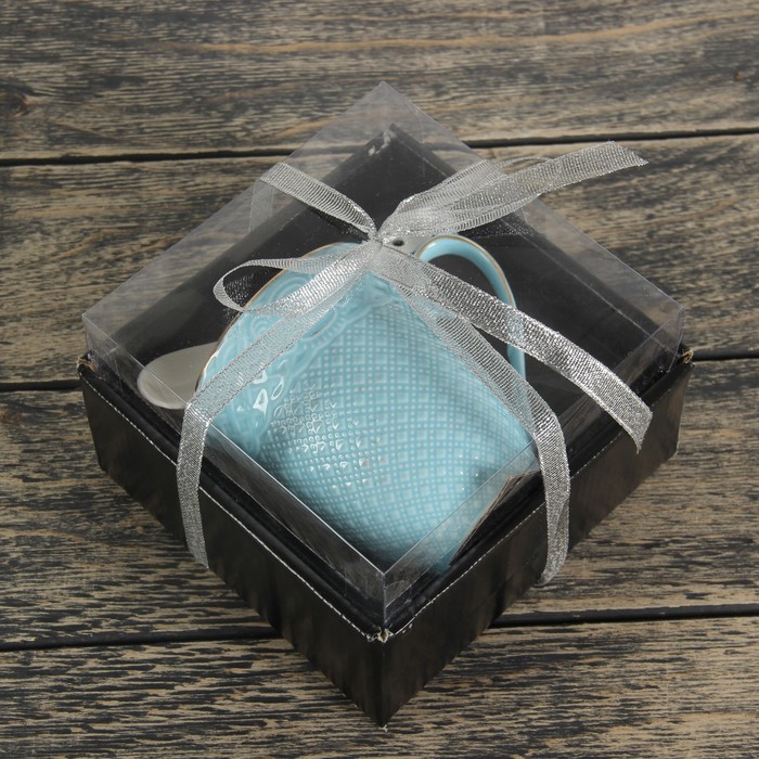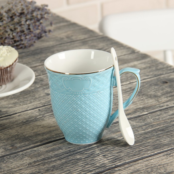 Кружка 300 мл "Сабрина", с ложкой, цвет голубой