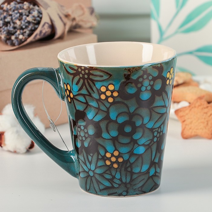 Кружка 320 мл "Муран. Цветочное панно", цвет синий
