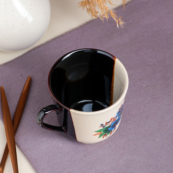 Кружка 350 мл "Бело-коричневая" деколь, микс