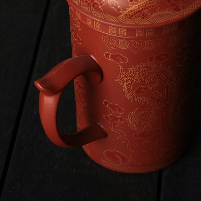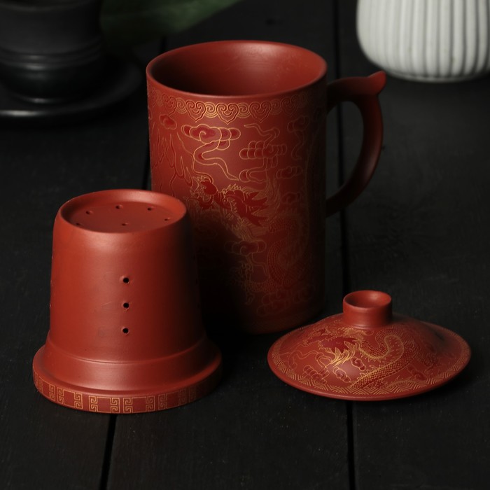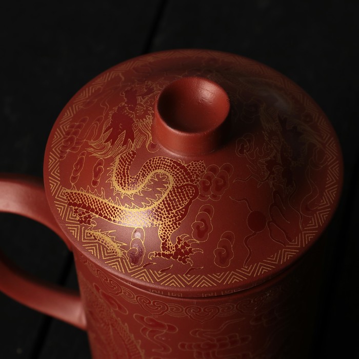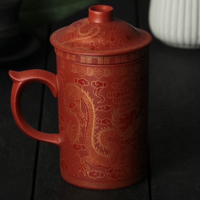Кружка 350 мл "Огненная птица", с крышкой и керамическим ситом