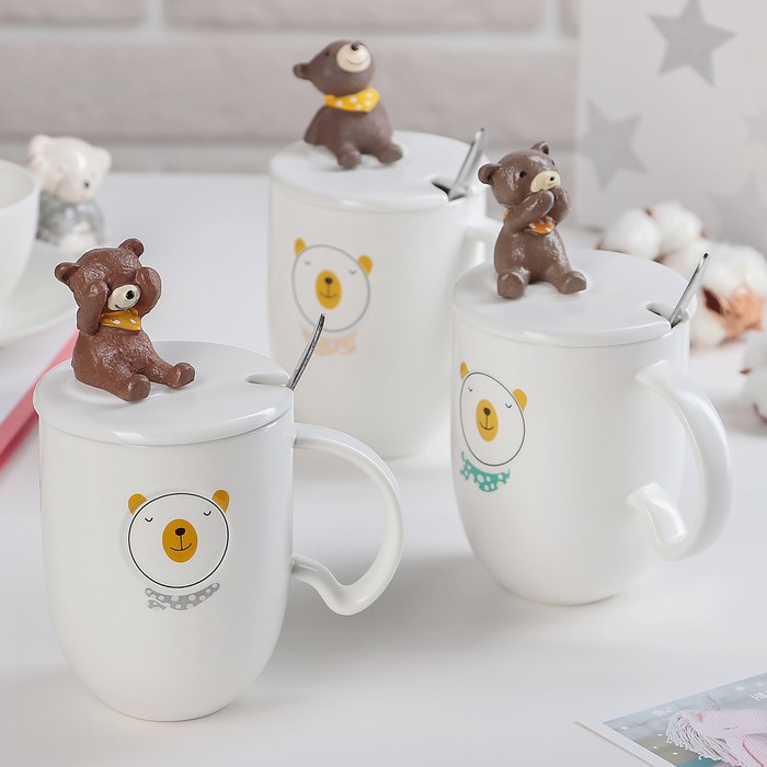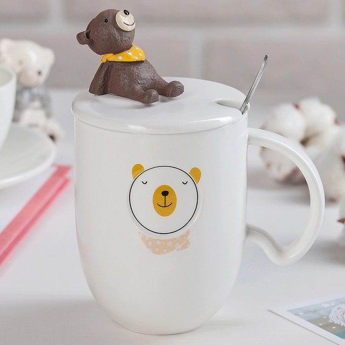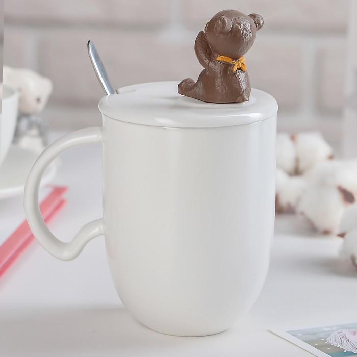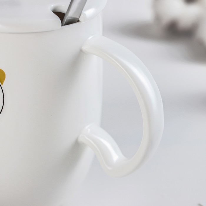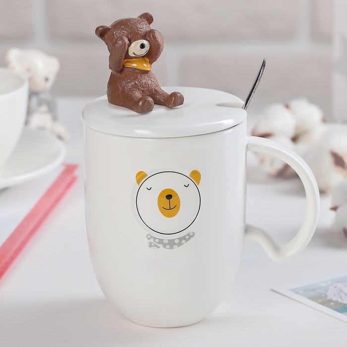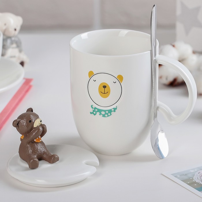 Кружка 350 мл "Тэди", с крышкой и ложкой, рисунок МИКС