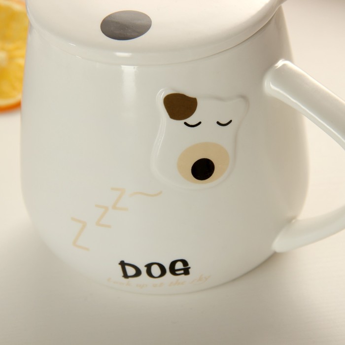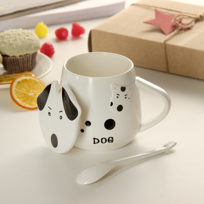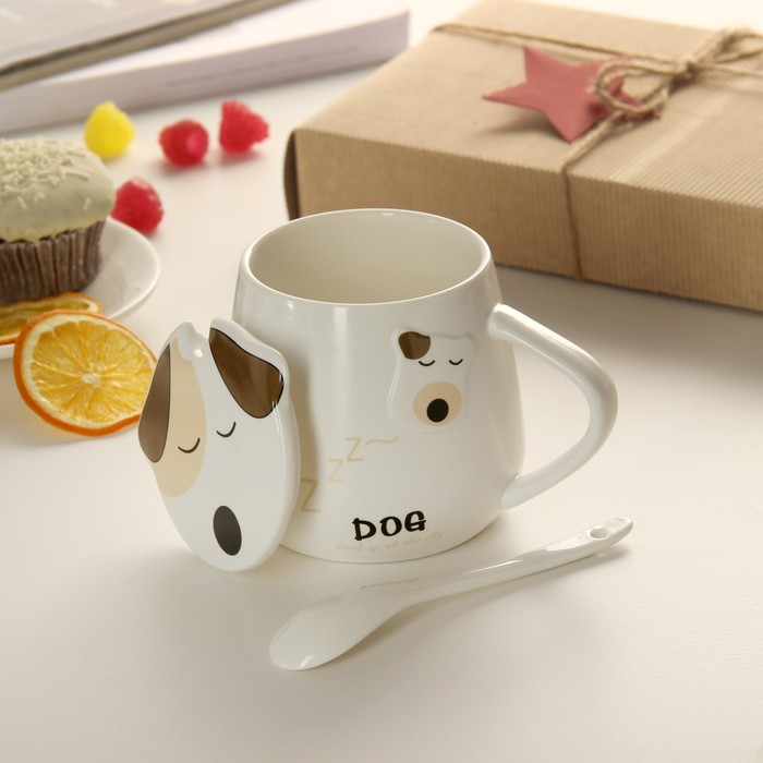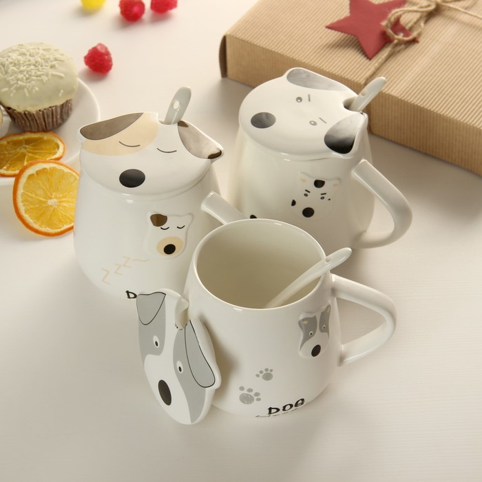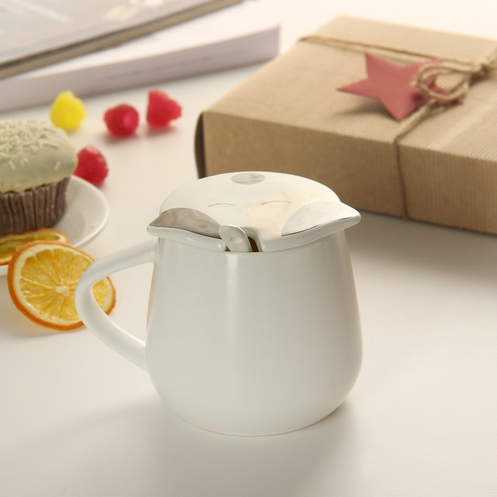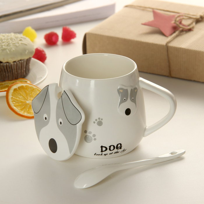 Кружка 350 мл "Животные", с керамической крышкой и ложечкой, животные МИКС