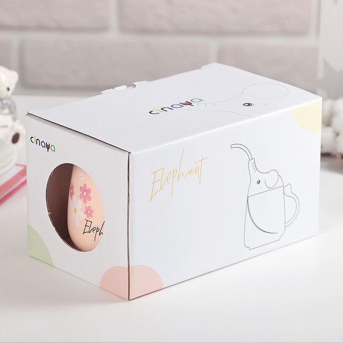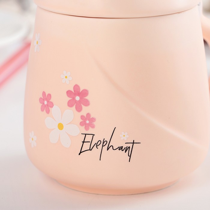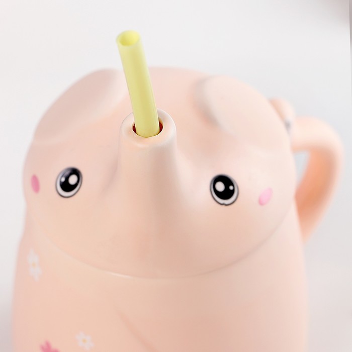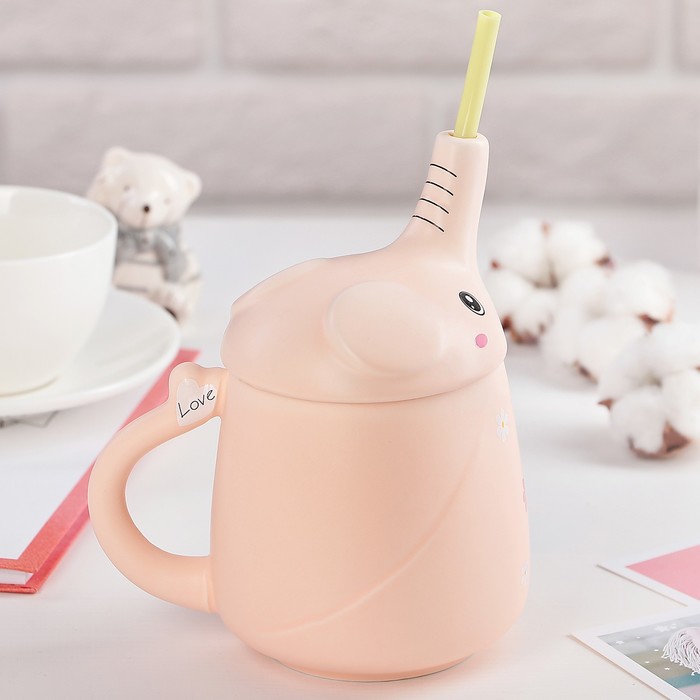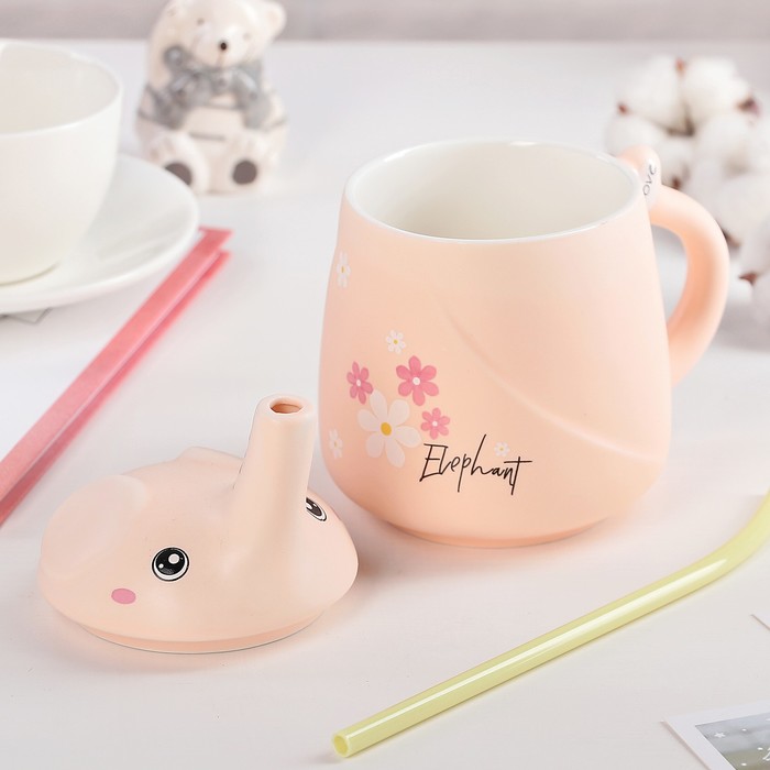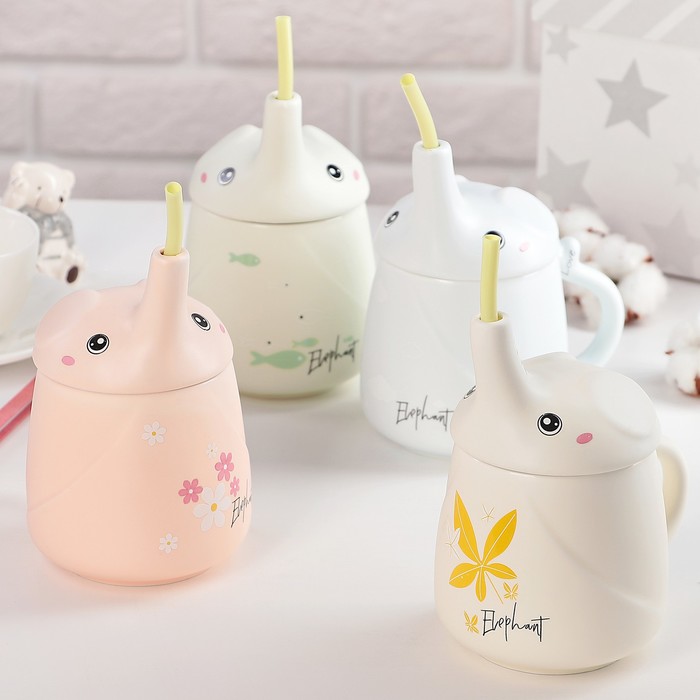 Кружка 400 мл "Слоненок", с крышкой и трубочкой, цвет МИКС