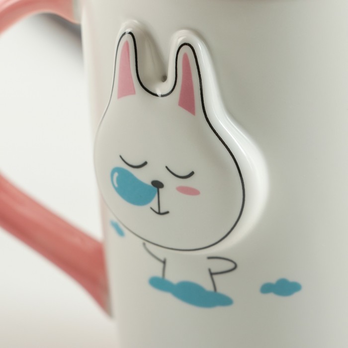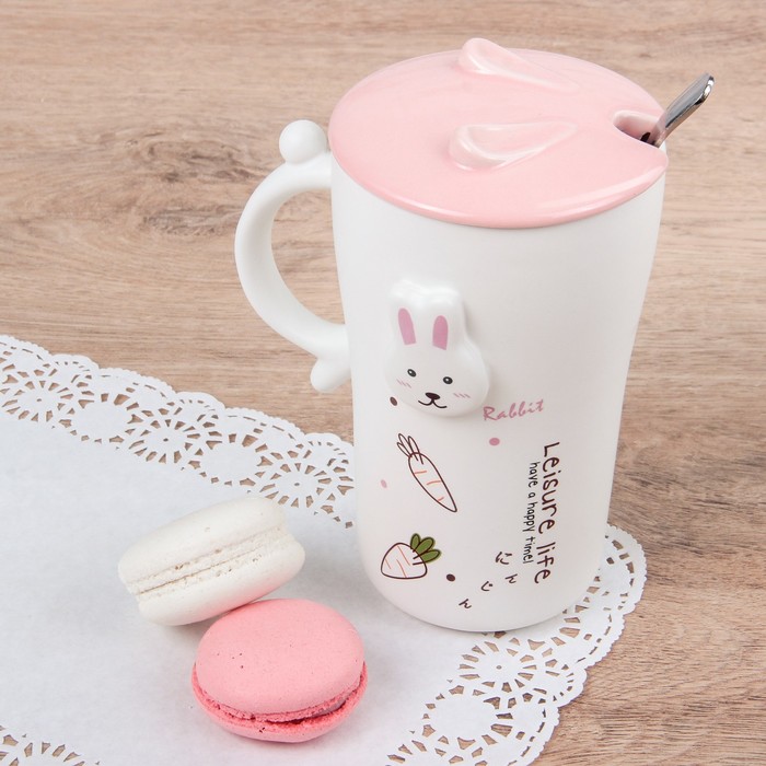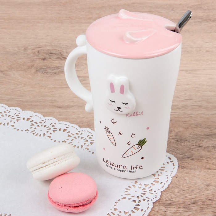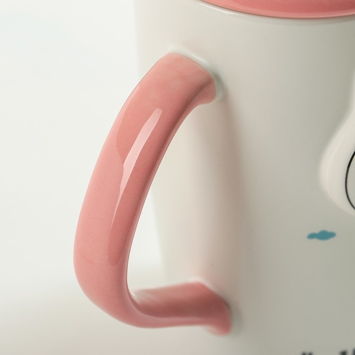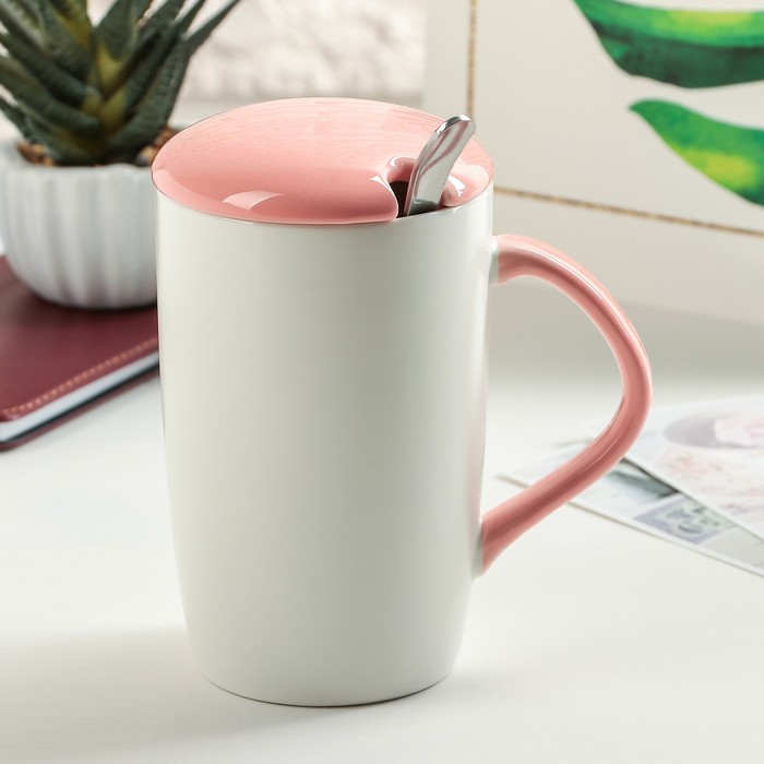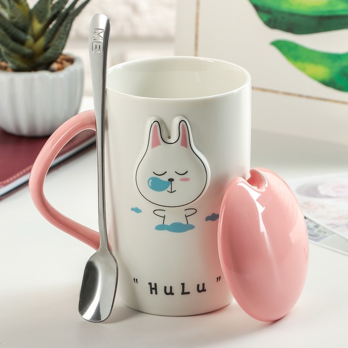 Кружка 400 мл "В саду", с керамической крышкой и ложкой, рисунок МИКС