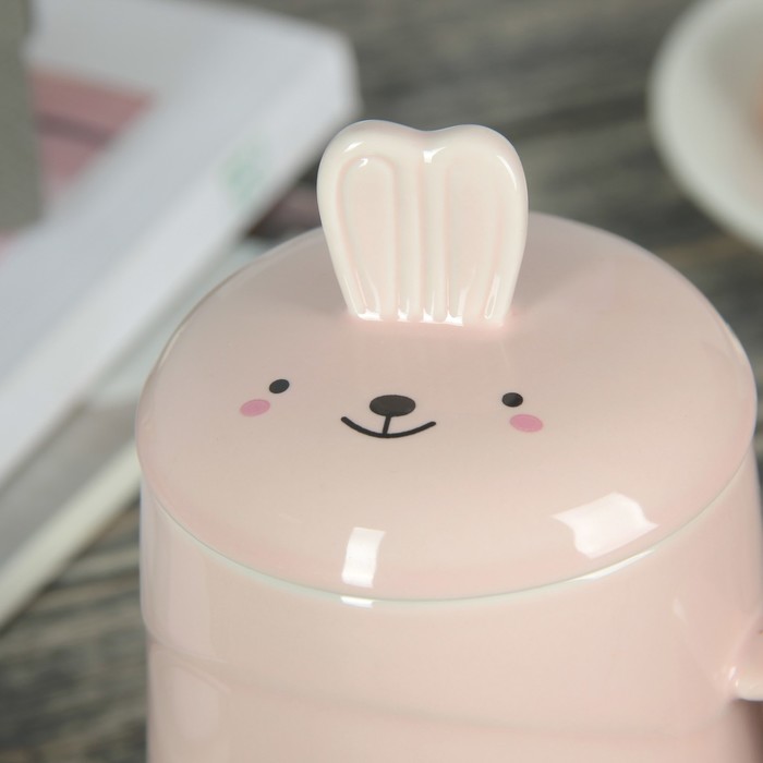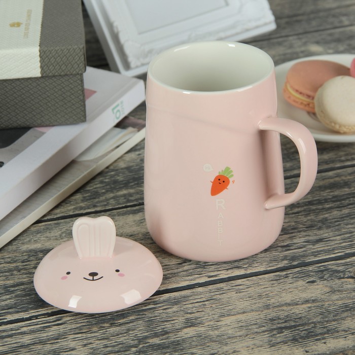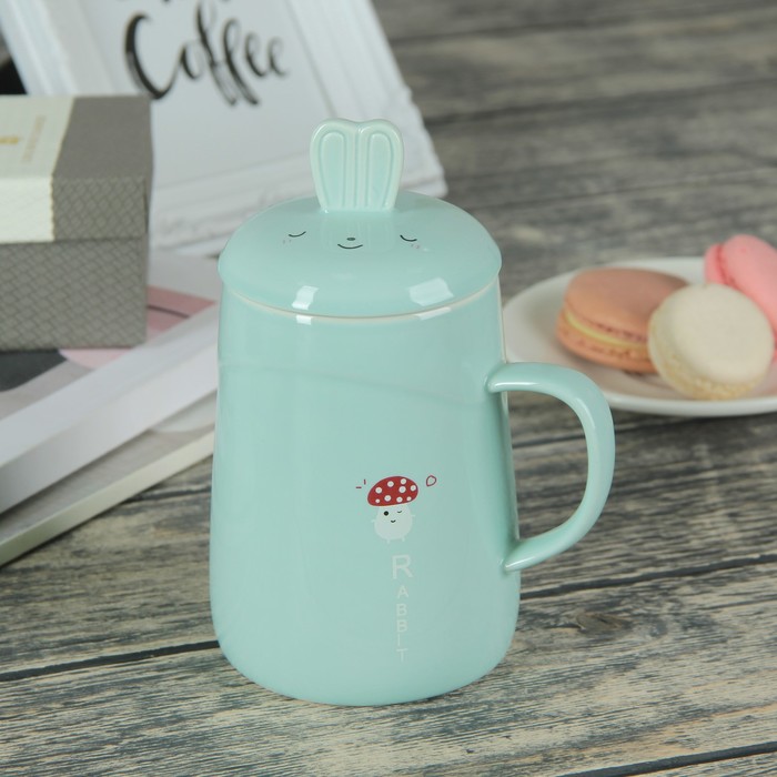 Кружка 420 мл "Лесные жители", с керамической крышкой, животные МИКС