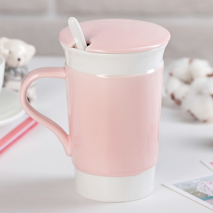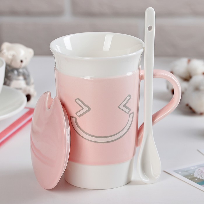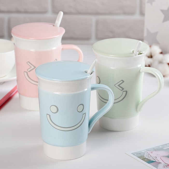 Кружка 450 мл "Эмоции", с крышкой и ложкой, цвет МИКС
