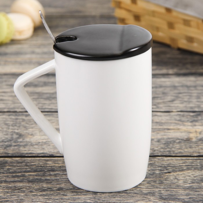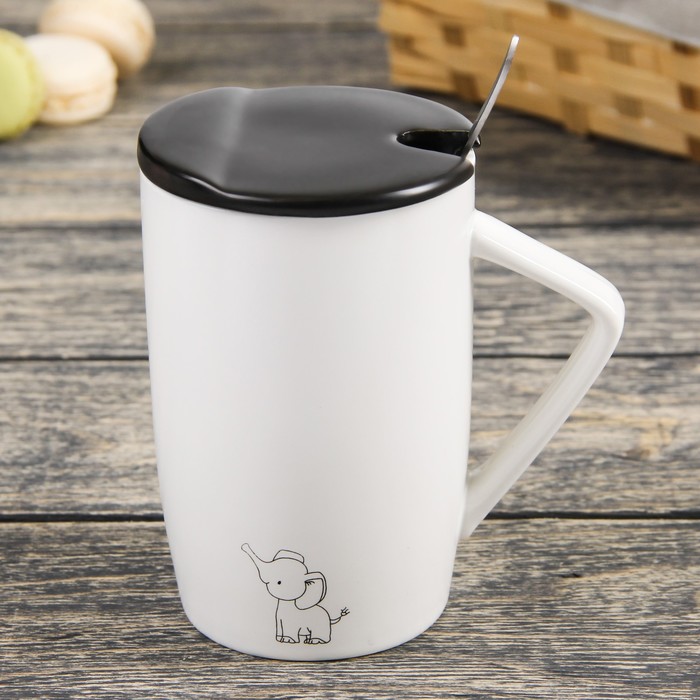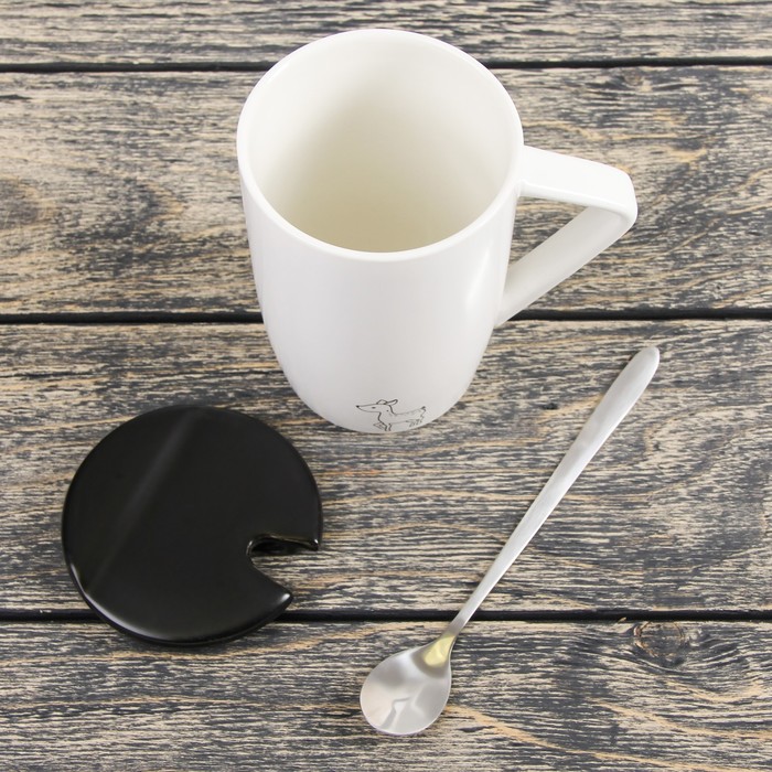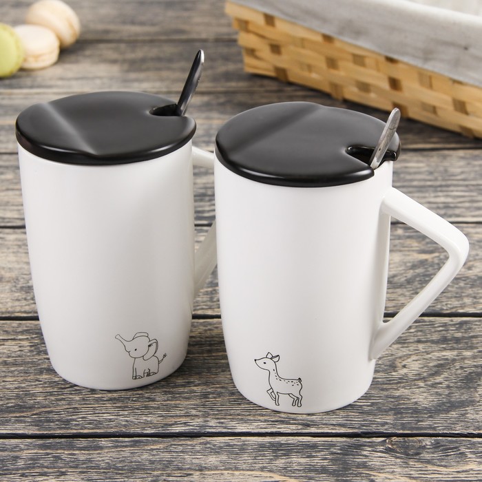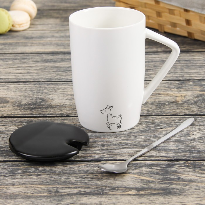 Кружка 450 мл "Заповедник", с керамической крышкой и ложкой, рисунок МИКС