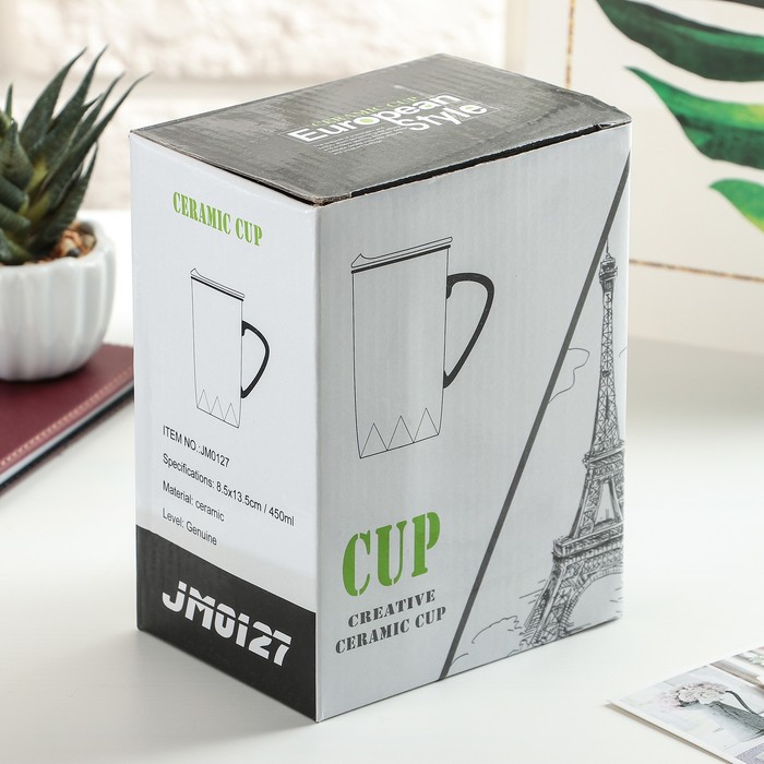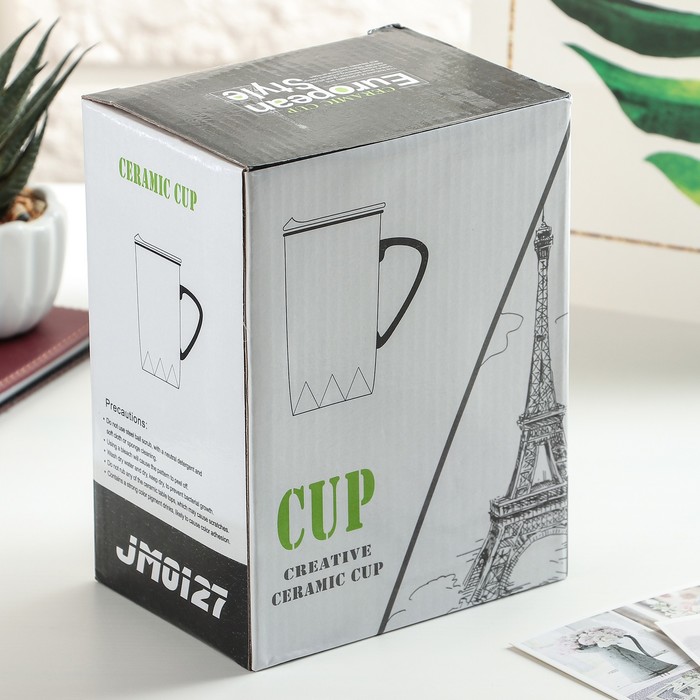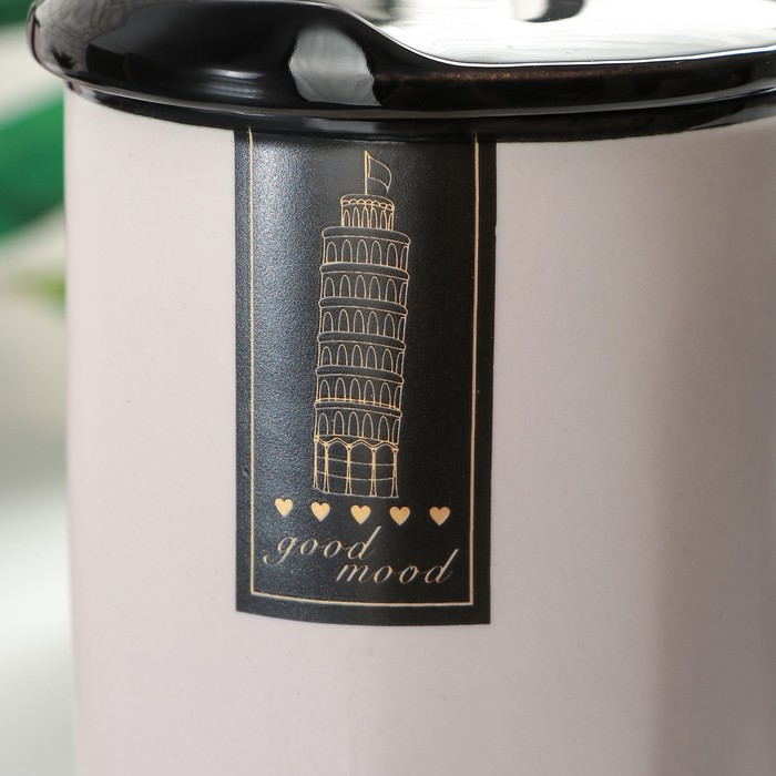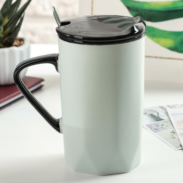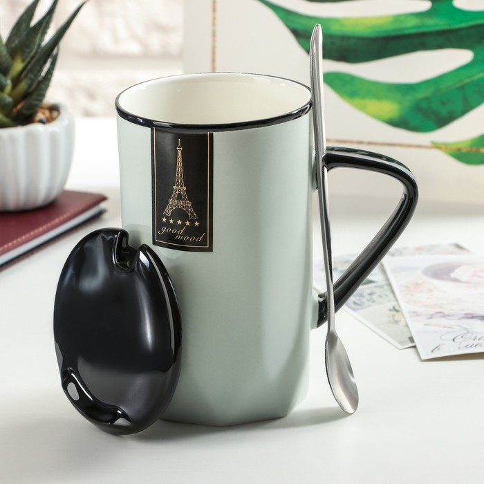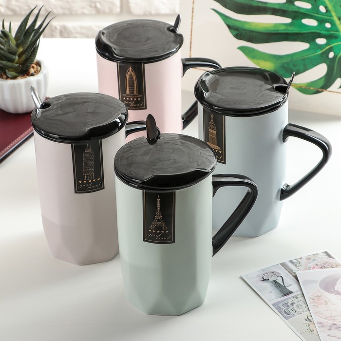 Кружка 480 мл "Путешествуй", с крышкой и ложкой, цвет и рисунок МИКС