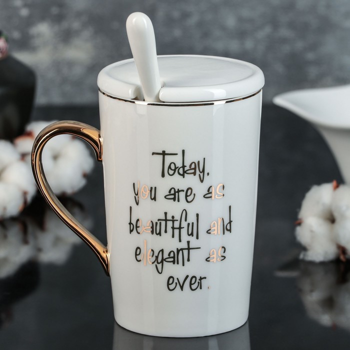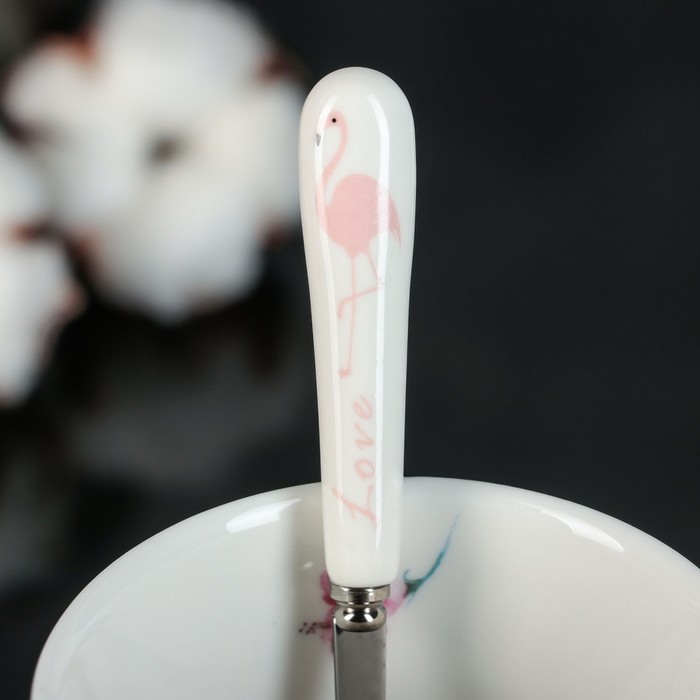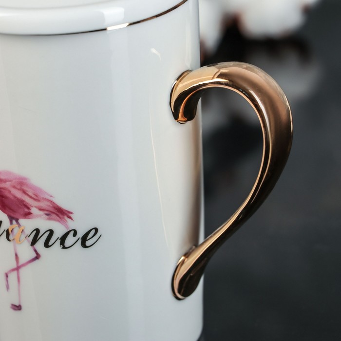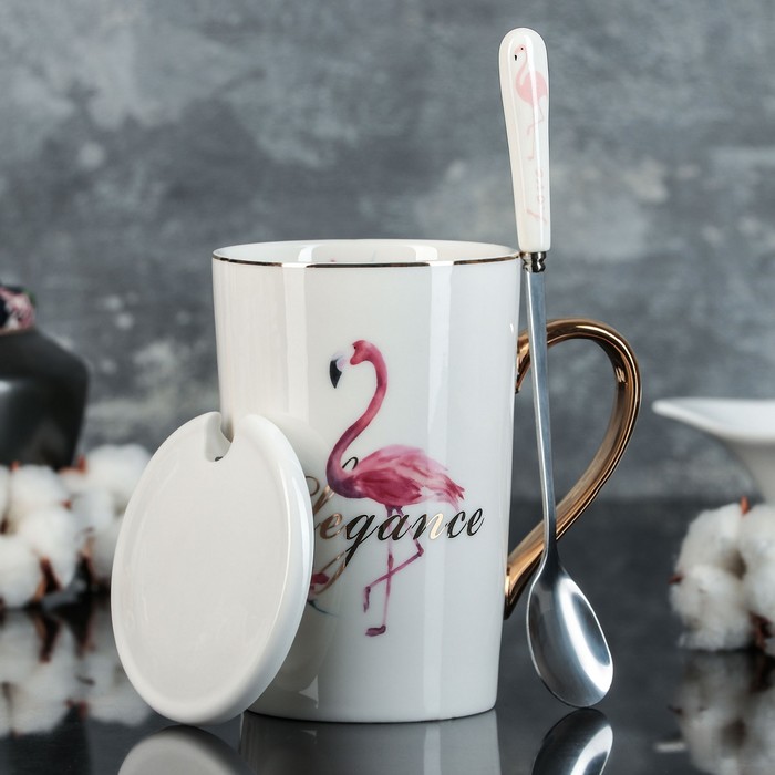 Кружка 500 мл "Фламинго", с крышкой и ложкой