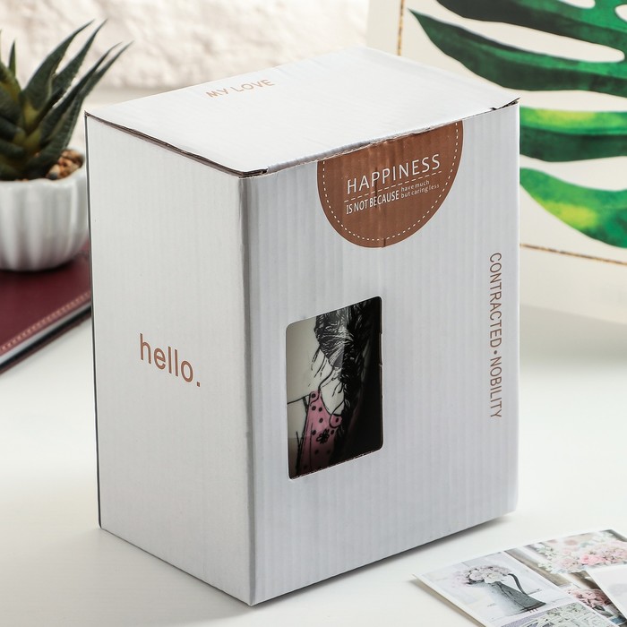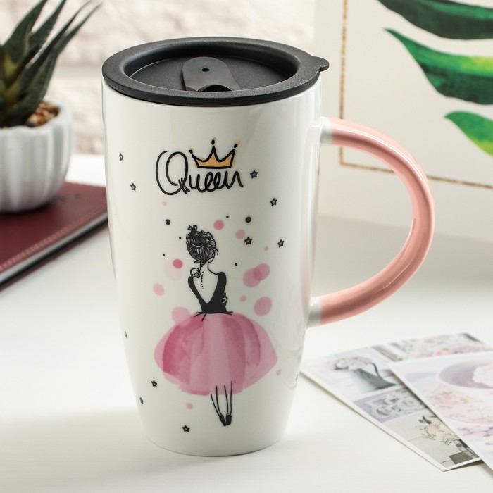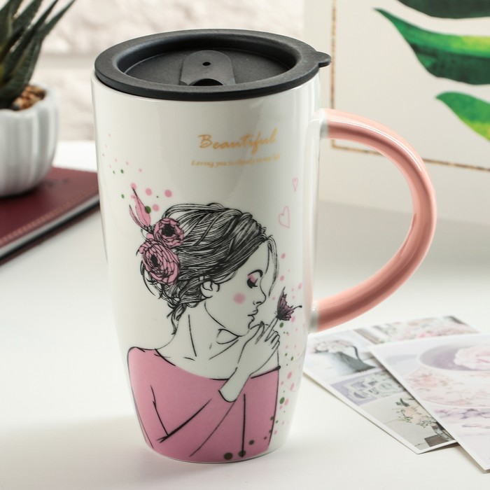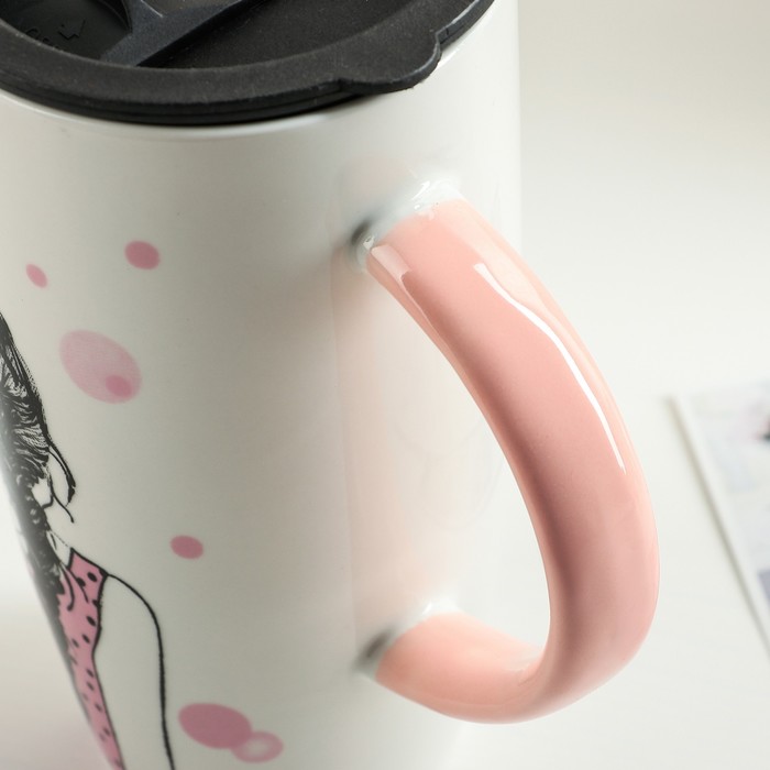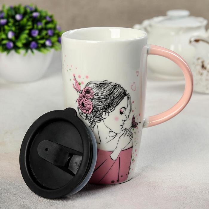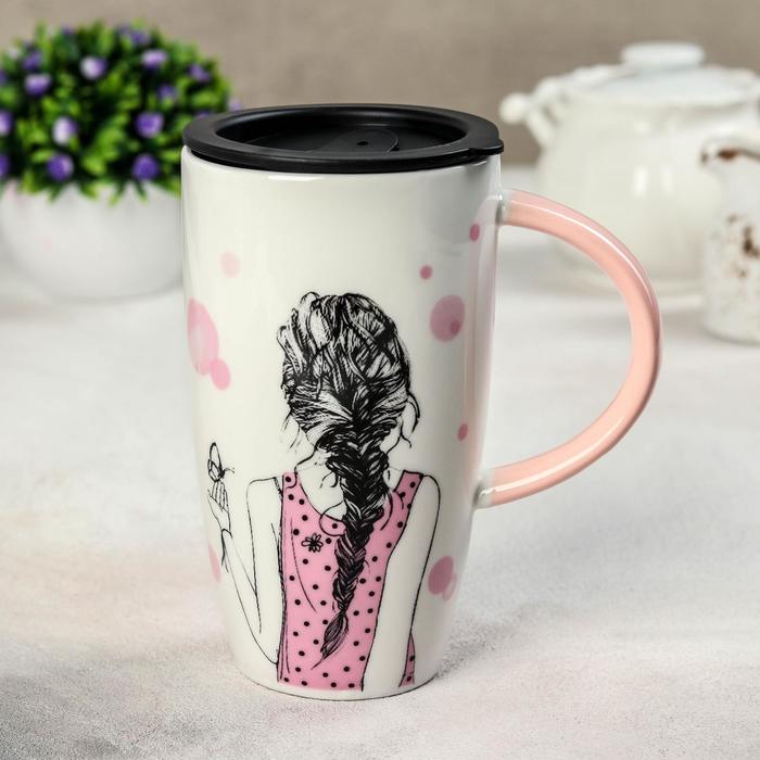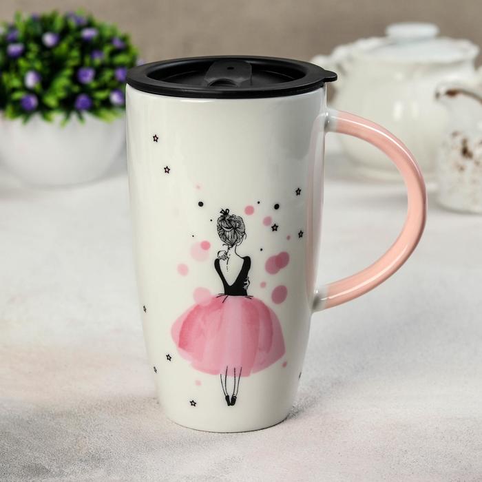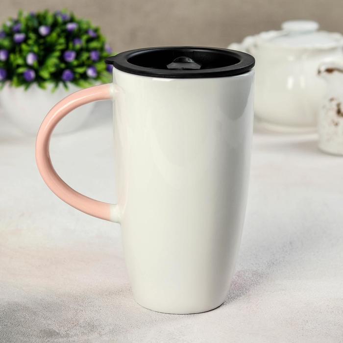 Кружка 500 мл "Геометрия", с пластиковой крышкой, рисунок МИКС