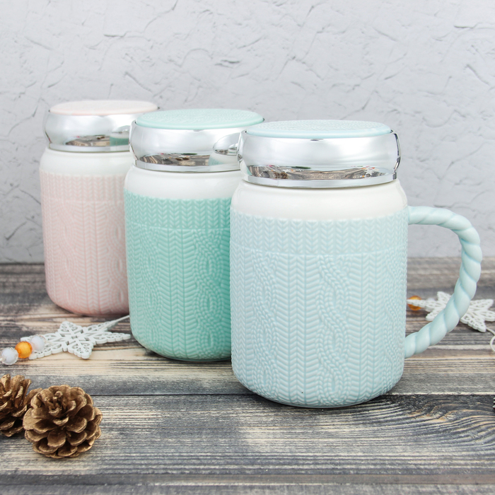 Кружка 500 мл "Уют", с крышкой, цвета МИКС