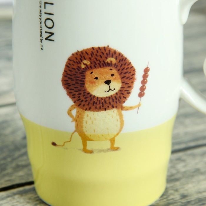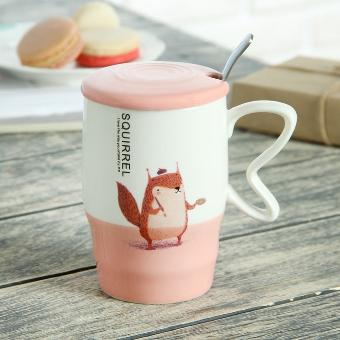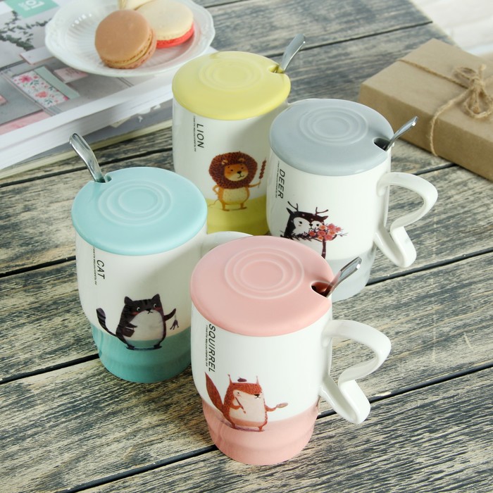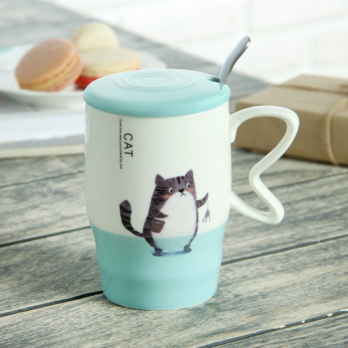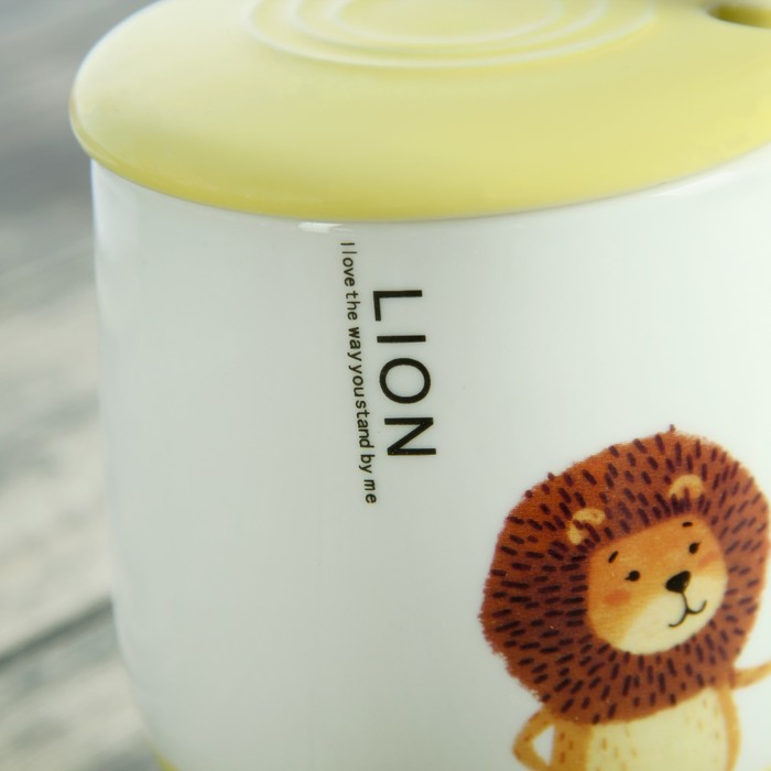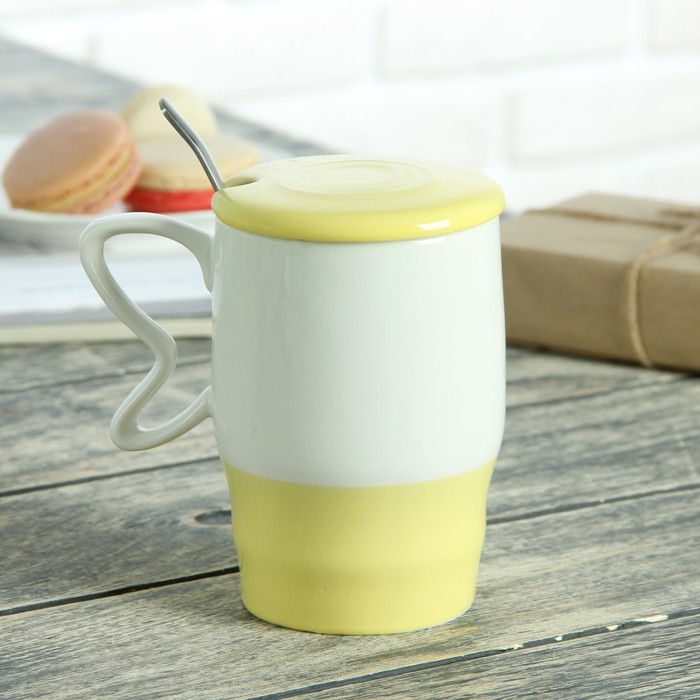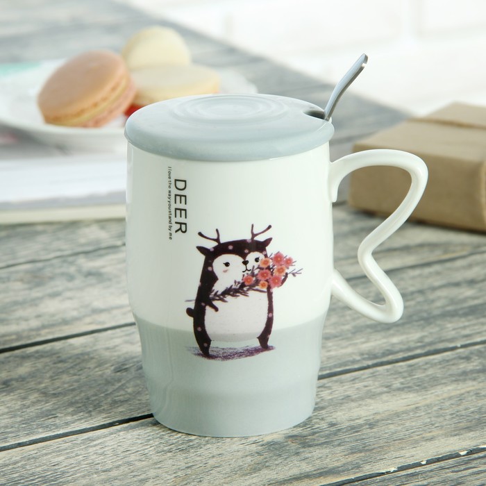 Кружка 500 мл "В танце", с керамической крышкой и ложкой, рисунок и цвет МИКС