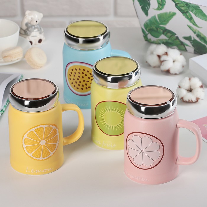 Кружка 550 мл "Долька", с крышкой, цвет и рисунок МИКС