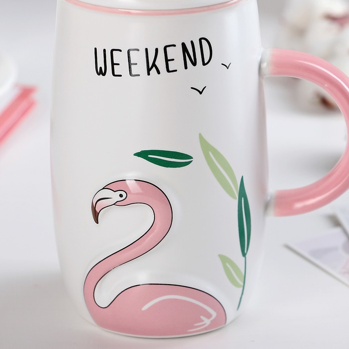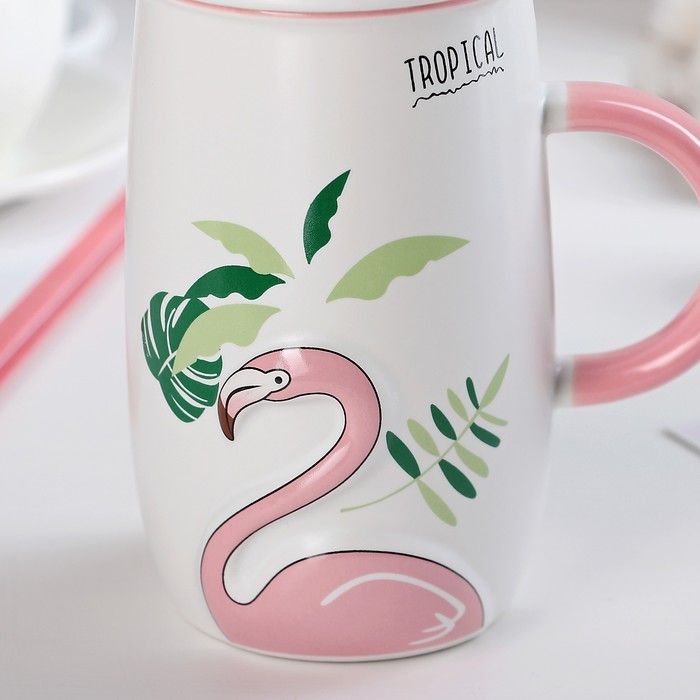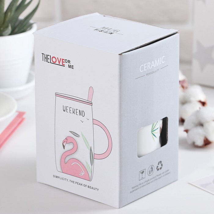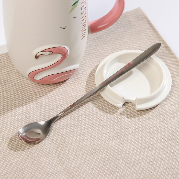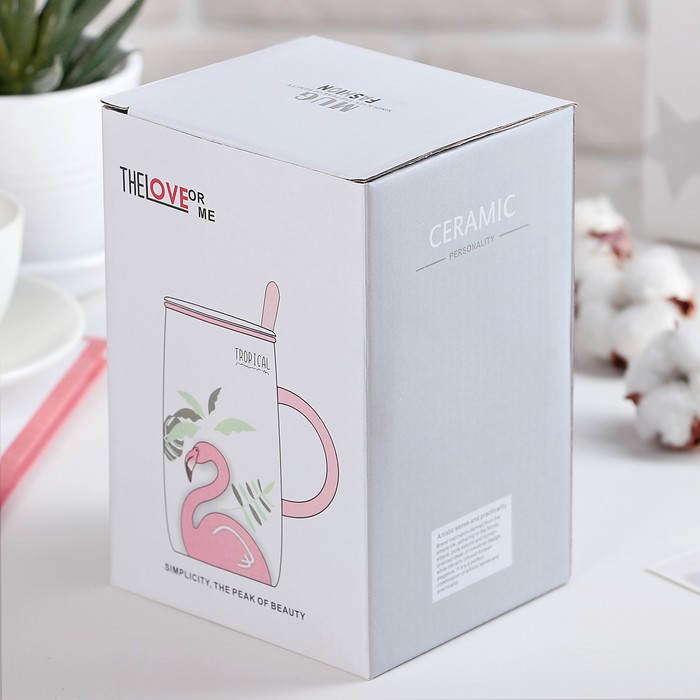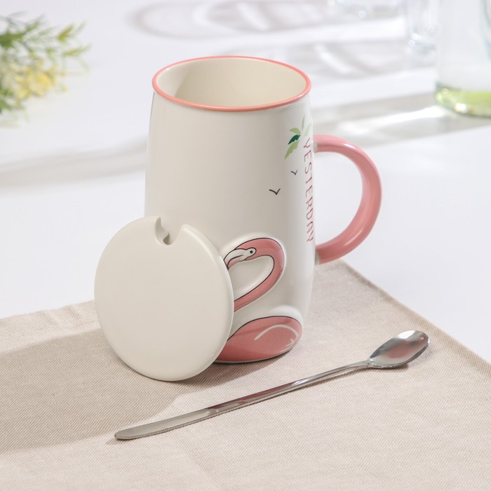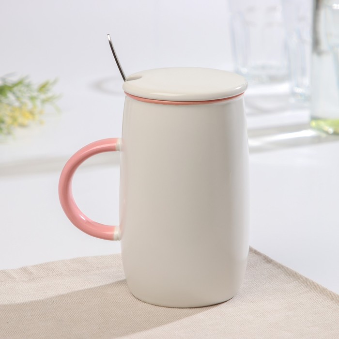 Кружка 580 мл "Дитя заката", с крышкой и ложкой, рисунок МИКС