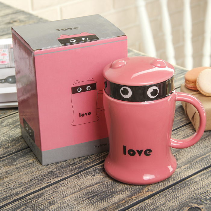 Кружка 600 мл "Ниндзя", с керамической крышкой, цвета МИКС