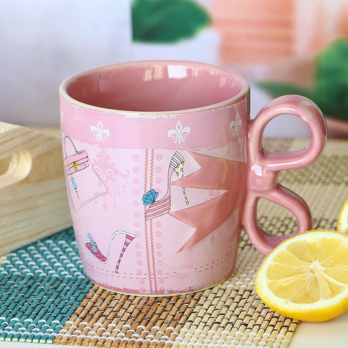 Такая кружка создана для очаровательных представительниц прекрасного пола, любящих высокие шпильки, длинные локоны, яркую помаду и стильный образ. Оригинальная кружка, ручка которой сделана в виде кокетливого бантика, будет приятным сюрпризом для девушки ко дню ее Рождения, 8 марта или Новому году.