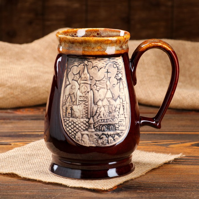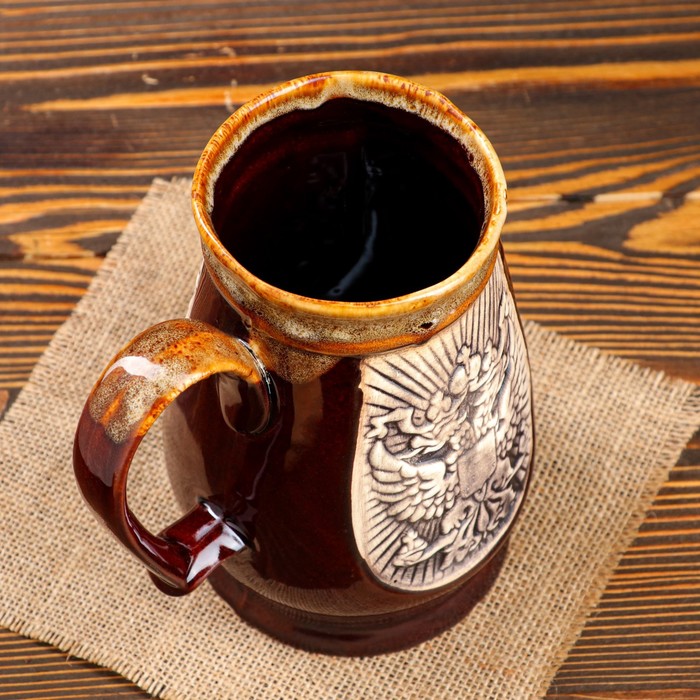 Кружка для пива "Россия" 1 л, микс отлично подходит для хмельных напитков. Благодаря термоизолирующим свойствам керамическое изделие надолго сохранит прохладу содержимого.