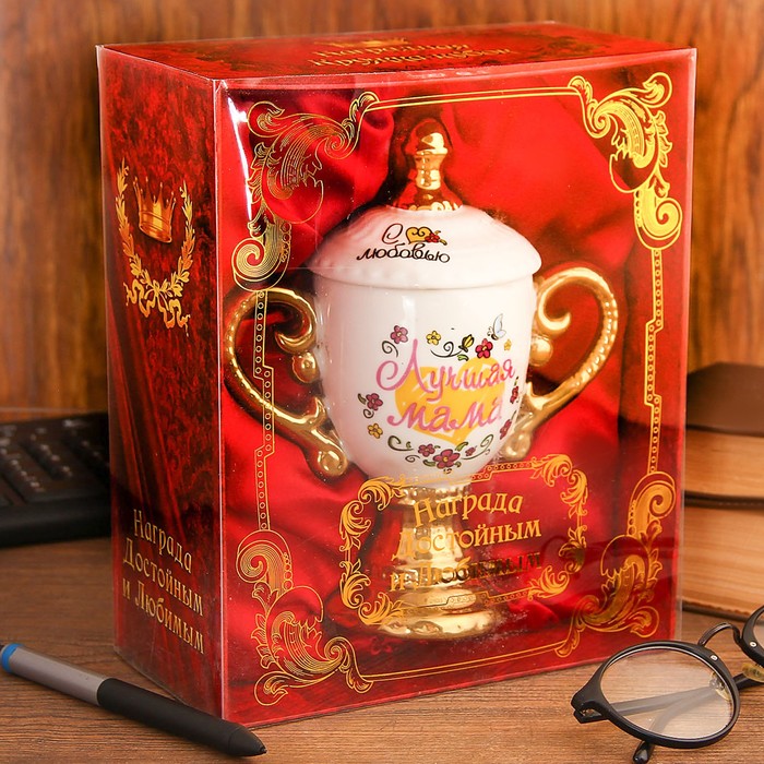 Считаете, что ваша мама – самая лучшая? Вручите ей кубок, и это будет не бесполезный сувенир, а очень практичный подарок, ведь под видом кубка скрывается оригинальная кружка! Яркая и необычная, с крышкой и двумя изящными ручками, такая кружка подойдет для любимых маминых напитков – от чая с мятой и лимоном до теплого молока с медом. Нужный подарок к любому празднику.
