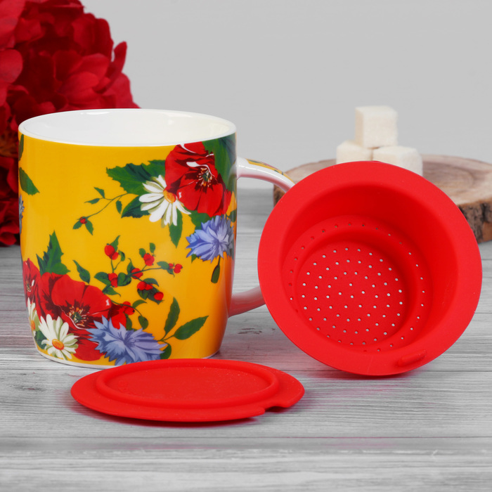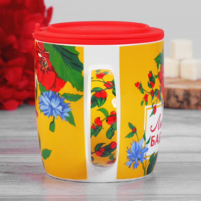 Кружка "Любимая бабушка" с силиконовой крышкой-ситечком, 350 мл