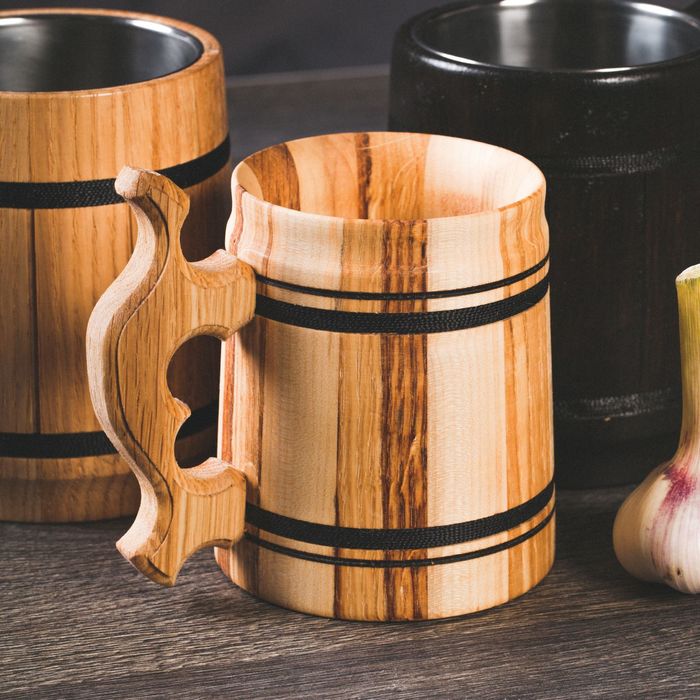 Деревянная кружка — идеальная ёмкость для хмельного напитка! Она делает аромат пива особенно ярким, а вкус — более насыщенным. Бокал также можно использовать в качестве декора.